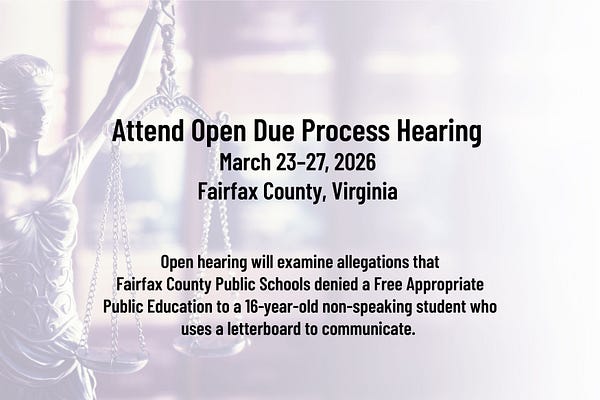 Open hearing will examine allegations that Fairfax County Public Schools denied a Free Appropriate Public Education to a 16‑year‑old non-speaking…