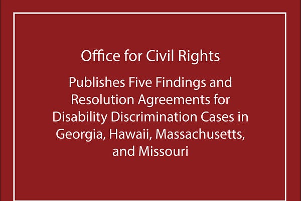 Office for Civil Rights Publishes Five Findings and Resolution Agreements for Disability Discrimination Cases: Georgia, Hawaii…