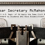 Dear Secretary McMahon: Will U.S. Dept. of Ed Apply the Same Civil Rights Standard to Students Who Have Disabilities?