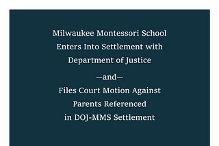 Milwaukee Montessori School Enters Into Settlement with Department of Justice—and Files Court Motion Against Parents Referenced in DOJ-MMS…