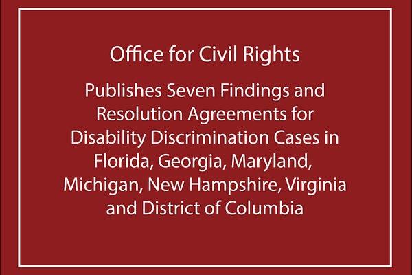 Office for Civil Rights Publishes Seven Findings and Resolution Agreements for Disability Discrimination Cases: Florida, Georgia, Maryland…