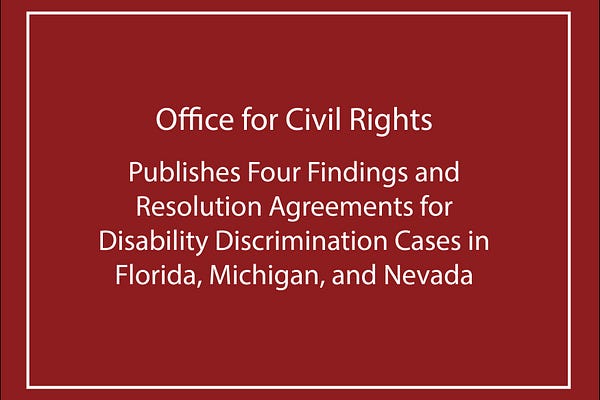 Office for Civil Rights Publishes Four Findings and Resolution Agreements for Disability Discrimination Cases: Florida, Michigan, and Nevada