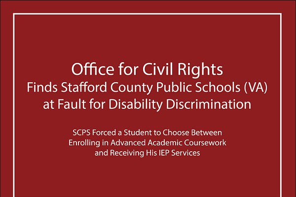 Office for Civil Rights Finds Stafford County Public Schools (VA) at Fault for Discrimination Against Students Who Have Disabilities