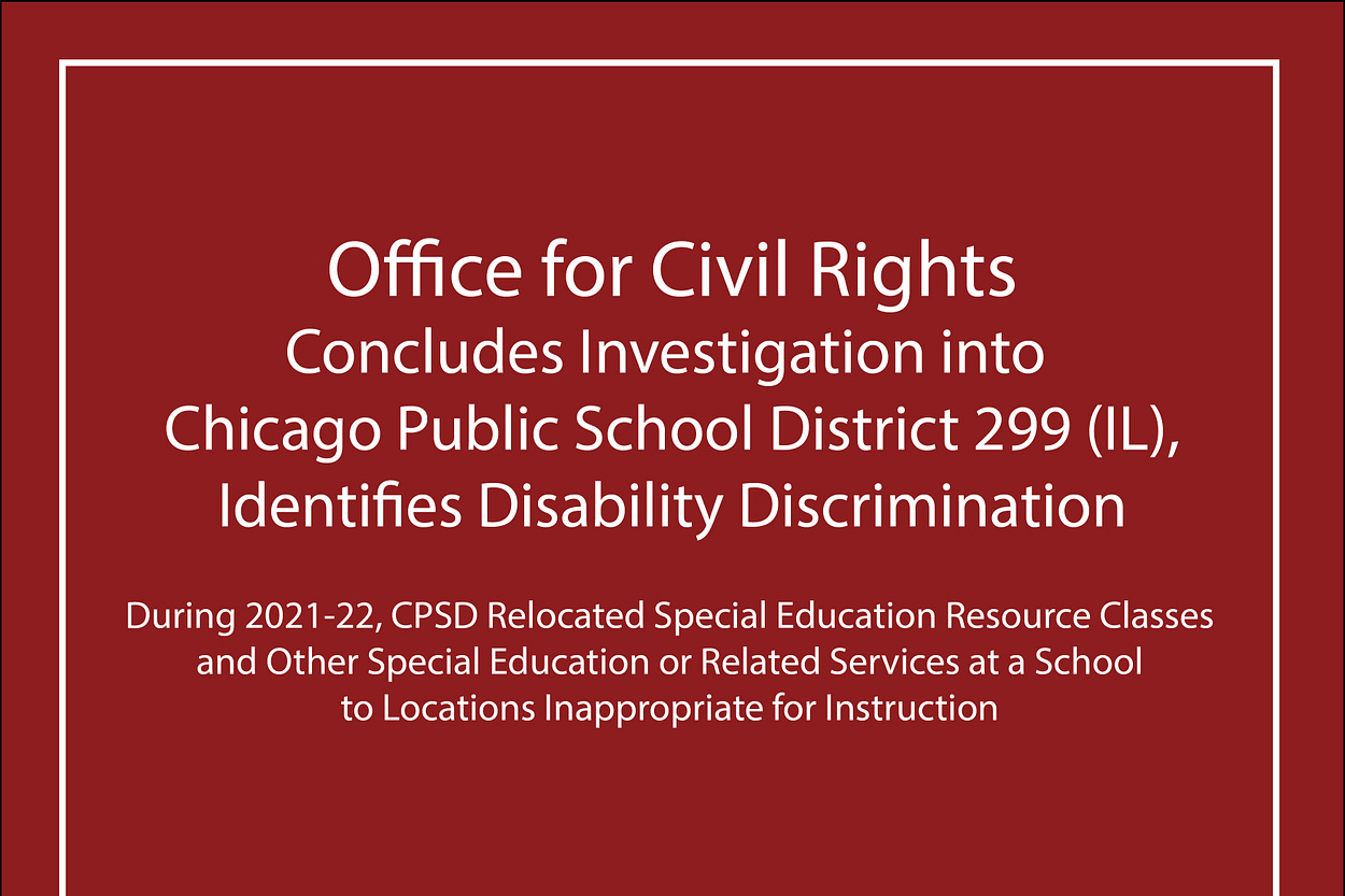 Office for Civil Rights Concludes Investigation into Chicago Public School District 299 (IL), Identifies Disability Discrimination