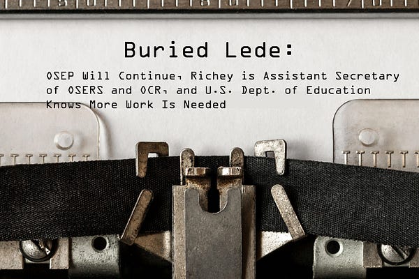 Buried Lede: OSEP Will Continue, Richey is Assistant Secretary of OSERS and OCR, and U.S. Dept. of Education Knows More Work Is Needed