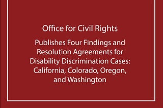 Office for Civil Rights Publishes Four Findings and Resolution Agreements for Disability Discrimination Cases: California, Colorado, Oregon…
