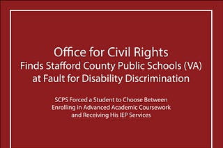 Office for Civil Rights Finds Stafford County Public Schools (VA) at Fault for Discrimination Against Students Who Have Disabilities